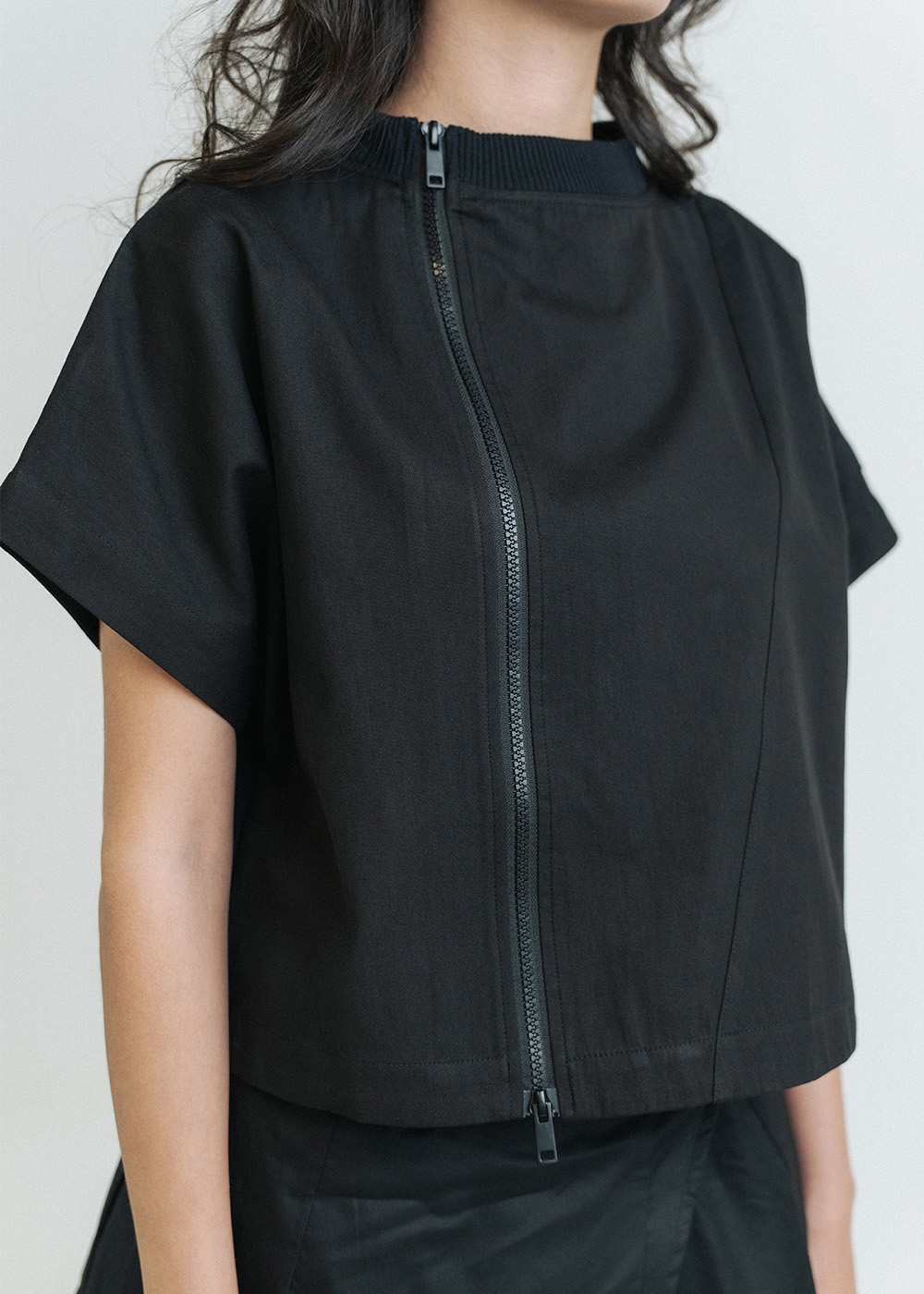 Di Asymmetric Zip Short Sleeve Top: Black S