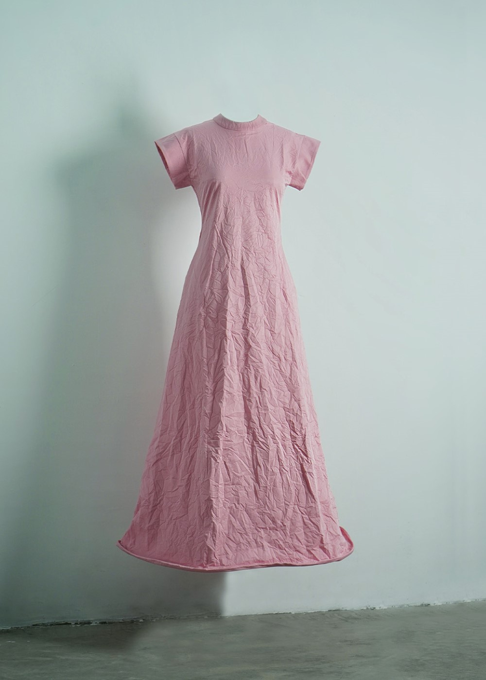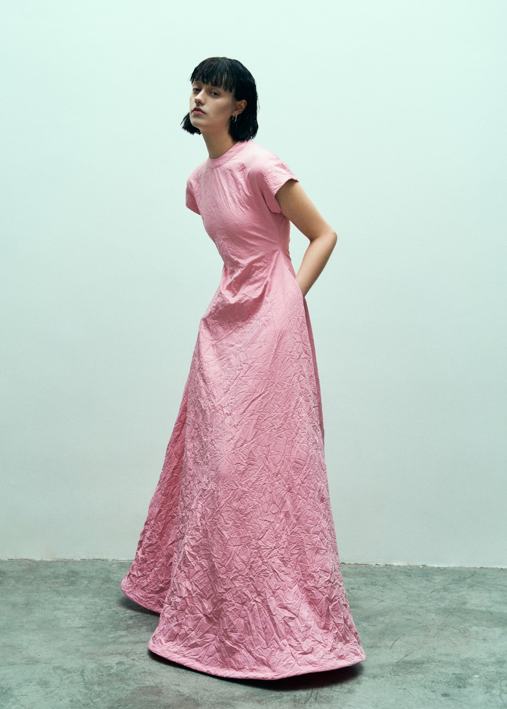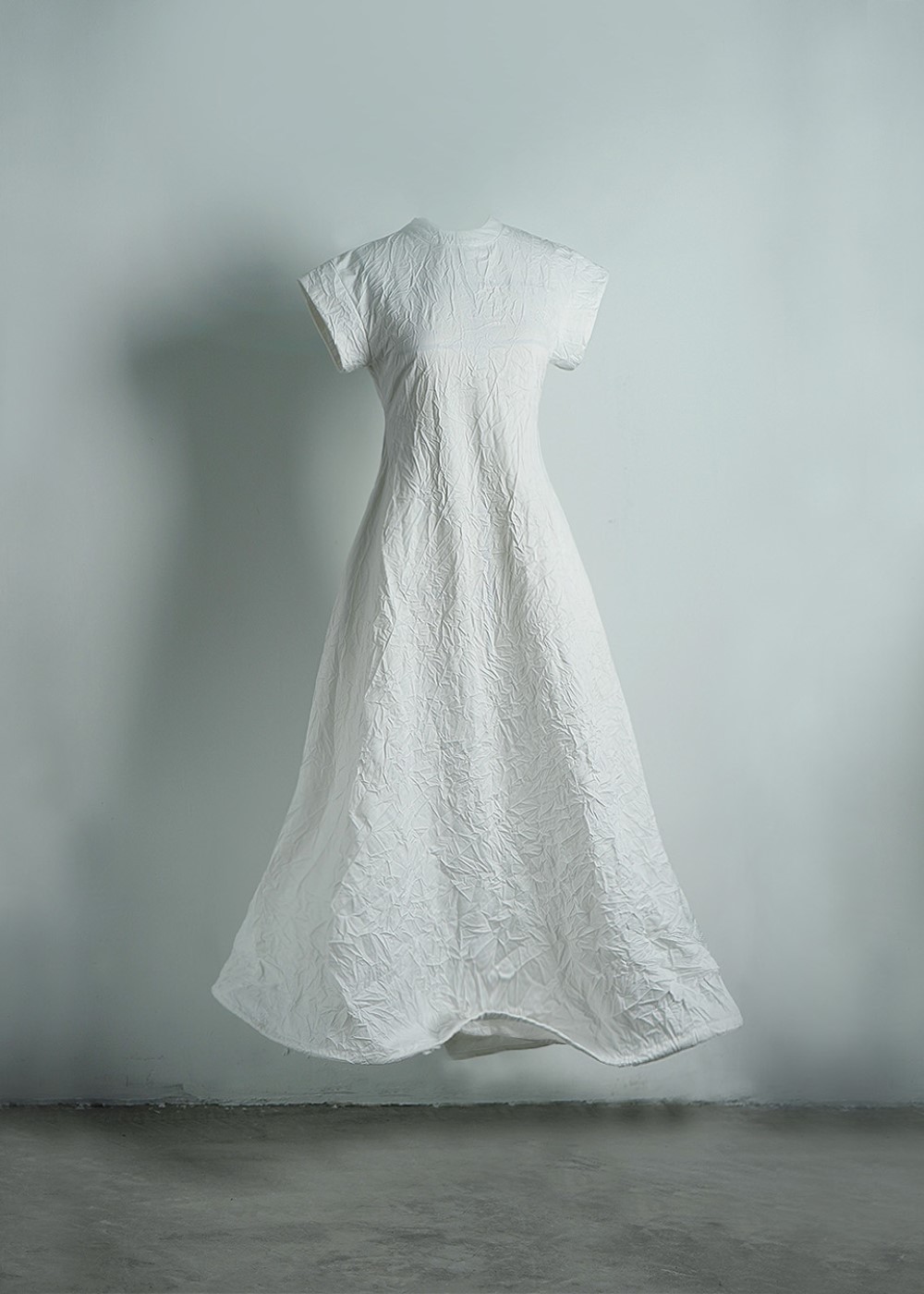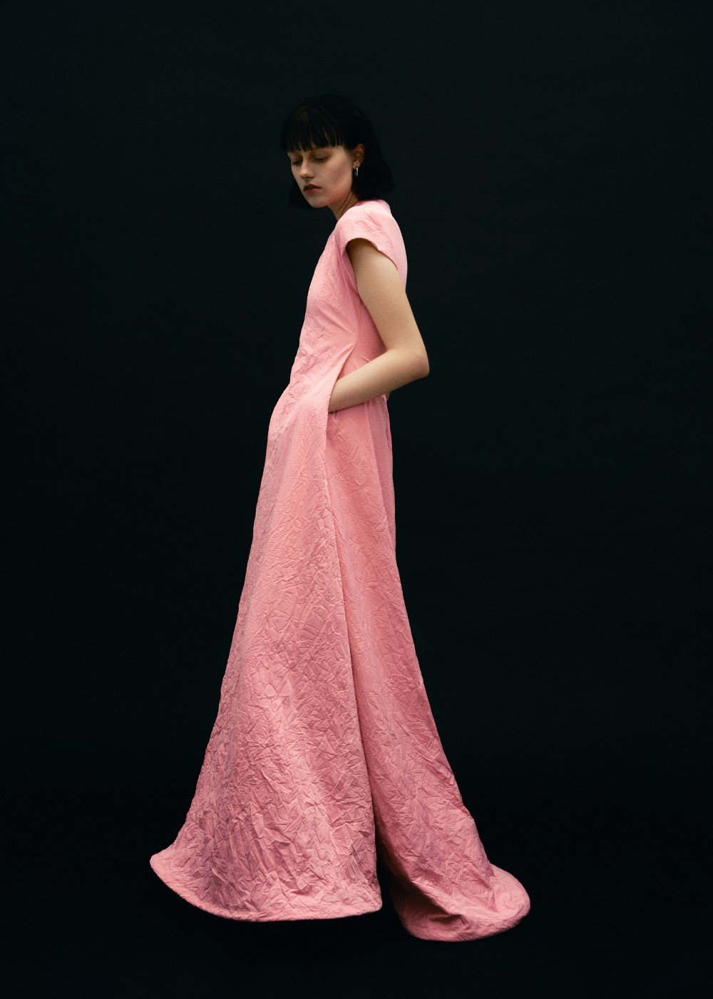 - The hem of the skirt and the cuffs are lined with sponge, giving them a structured appearance