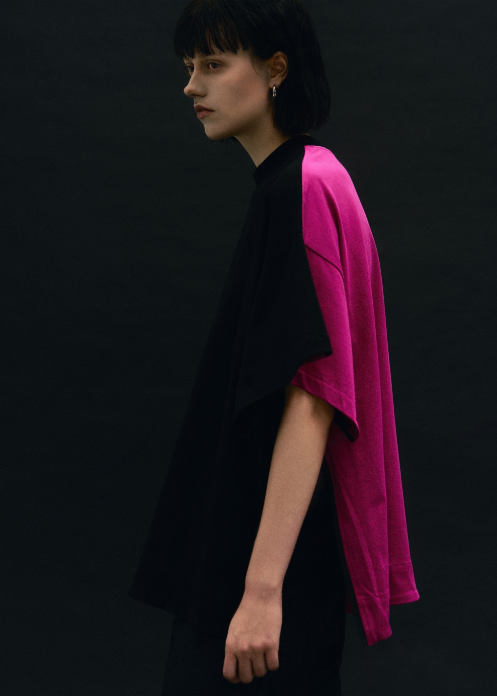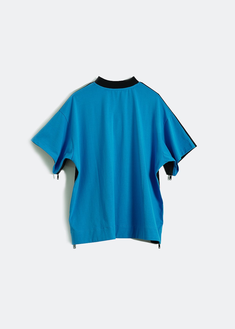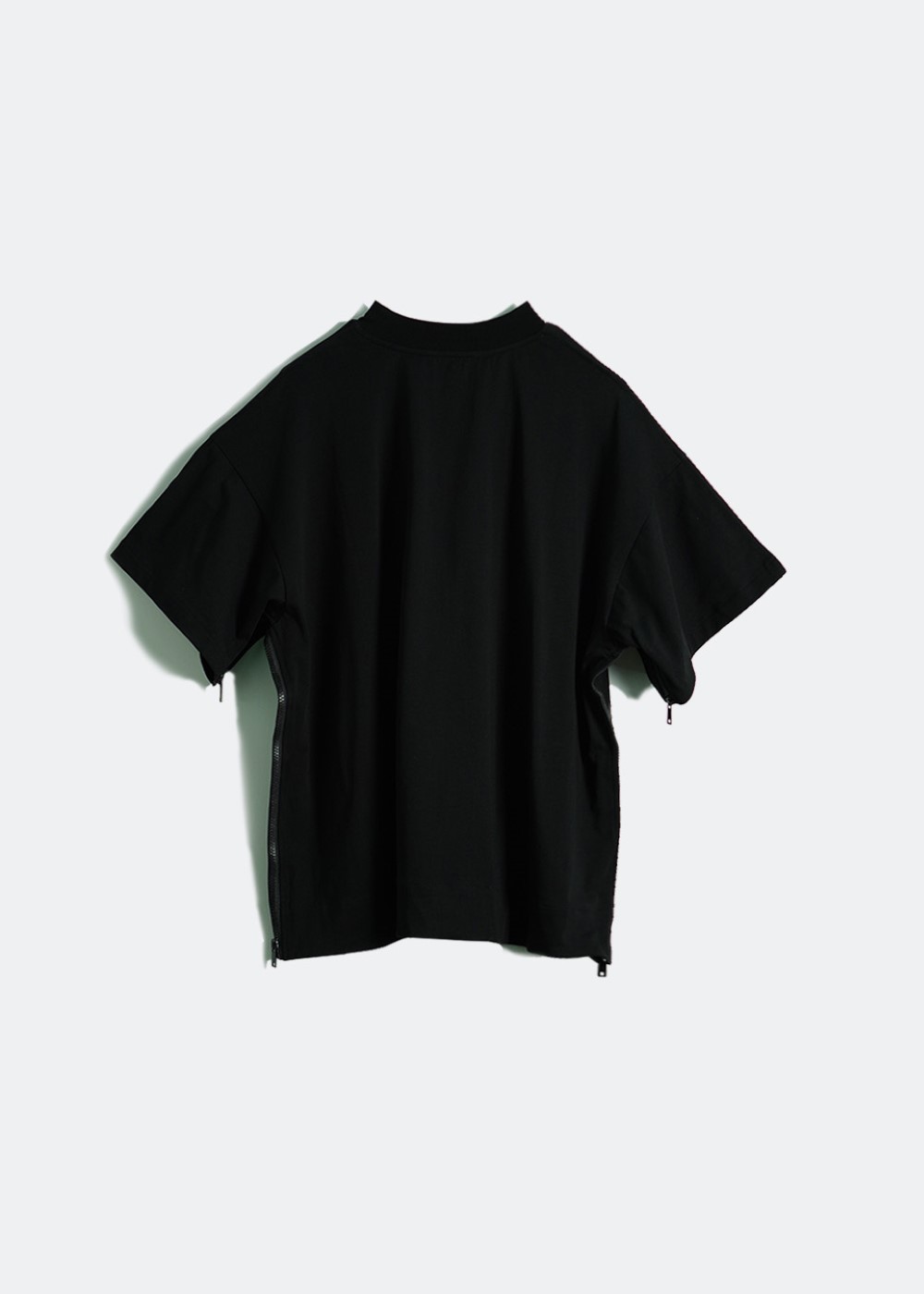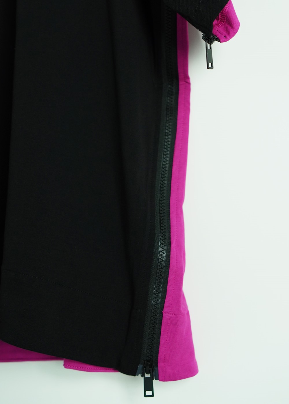 - The t-shirt has zippers on both sides that can be pulled, allowing for different styles